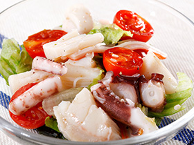 細目昆布は、北海道の日本海側を中心に利尻島、礼文島から渡島半島の福島町まで分布し、最も古くから採取されている昆布です。この昆布は比較的粘りが強く、おぼろ昆布やきざみ昆布として利用されています。今回はこの細目昆布を使ったサラダです。「食べる昆布」の美味しさを楽しめる一品です。