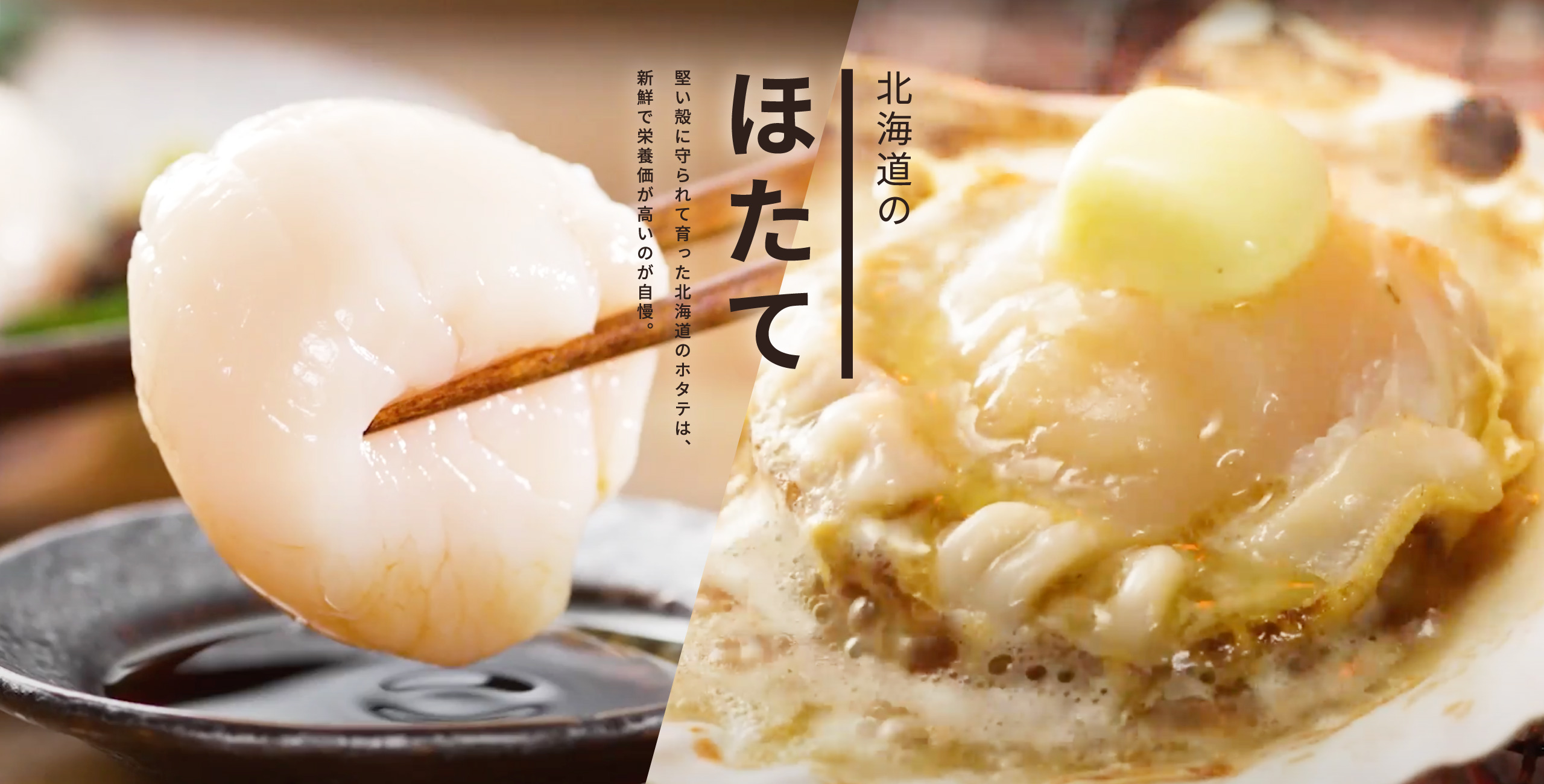 垂下方式では、冬から春にかけて水揚されることが多く、主にボイルほたて、剥き身ほたてなどに加工され、出荷されています。どちらも、北海道の豊かな自然環境の中で育った、美味しさたっぷりのほたてです。