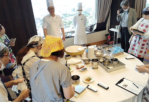 この料理教室は、近年北海道で漁獲が増えているものの、食べる習慣の薄い「ブリ」をもっと消費者の方に身近に感じてもらえるよう、同ホテルのシェフが講師となり、事前募集で集まった20名を対象に実施しました。当日はブリについて参加者の方により深く知って貰えるよう、その特徴や生態について解説を交えながら、家庭で実践しやすい調理方法を用いたレシピとして和食の山中料理長からは「ブリ南蛮漬け」を、中国料理の桃井副料理長は「ブリの春雨昆布蒸し」を調理指導しました。また、料理教室終了後には、道産ブリを食材に用いた両シェフ特製のランチコースが振る舞われ、参加者の方たちはその美味しさに舌鼓を打っていました。
